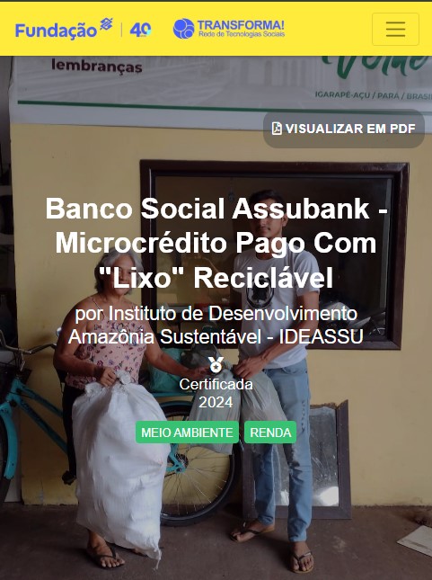 Tecnologia Social certificada pela Fundação Banco do Brasil, reconhecida pelo impacto socioambiental.